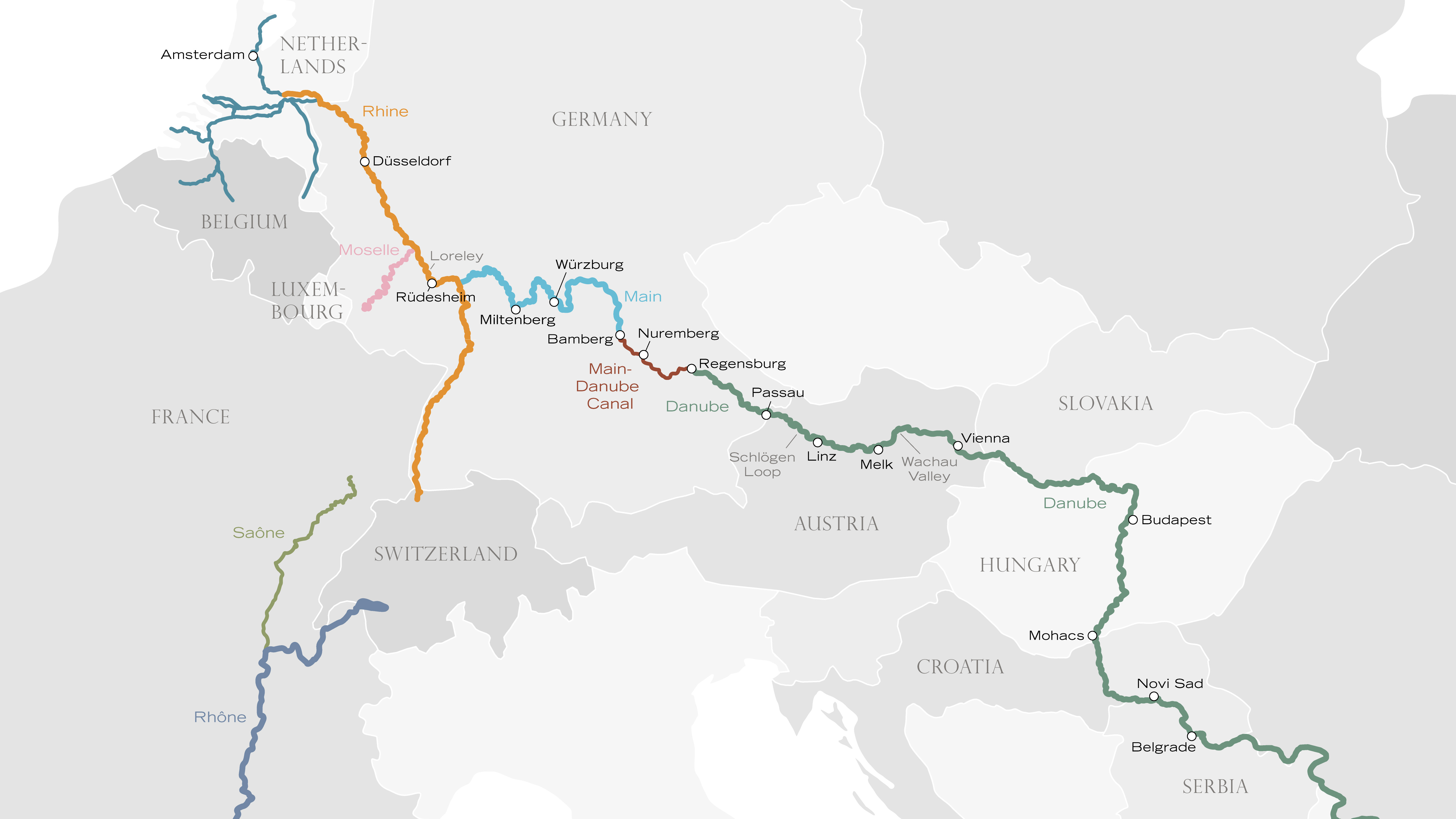 If you`re going to travel the rivers of Europe, do it in style! Cruise in total luxury from Amsterdam to Belgrade, with countless encounters in unforgettable ports, like the charming wine village of Rüdesheim, Würzburg to see one of Europe’s most impressive palaces, Bamberg with its middle-of-the-river Town Hall, and Austria’s regal Vienna. Highlights include the clifftop castles and eerie legend of the Lorelei in the fabled Rhine Gorge, the captivating Main-Danube Canal, the UNESCO World Heritage Wachau Valley with its terraced vineyards and orchards, and the Benedictine abbey at Melk. Discover the spirit of the Hungarian people in Budapest, then push even farther south into the Lower Danube, with stops in Mohacs, Novi Sad, and the Serbian capital of Belgrade.