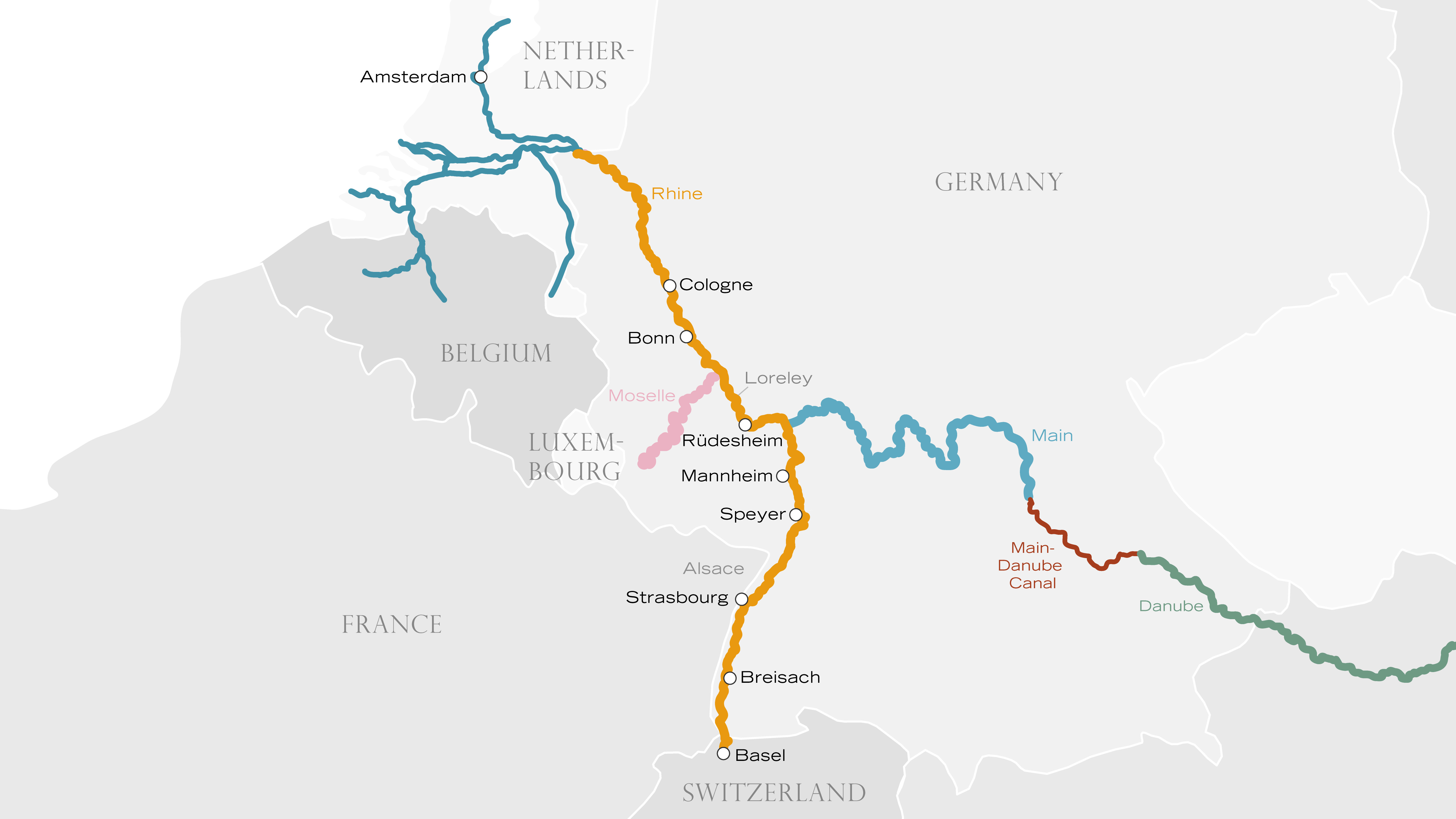 Eight days, four countries, and one impressive river. This special cruise reveals just how diverse the scenery and landscapes are along the incredible Rhine. You`ll experience firsthand the way the river meanders past meadowlands, industry, clifftop castle ruins, enchanting vineyards—and, of course, the many cities, towns, and villages, whose stories you`ll recall for years to come. Embark in Amsterdam, capital of the Netherlands, then cruise into Germany for stops in monumental Cologne, the former capital of Bonn, charming Rüdesheim, and Mannheim with one of the largest palace complexes in the world. Also visit France`s stunning Strasbourg and Switzerland`s Basel, the congenial meeting point of three countries—a truly magical trip!