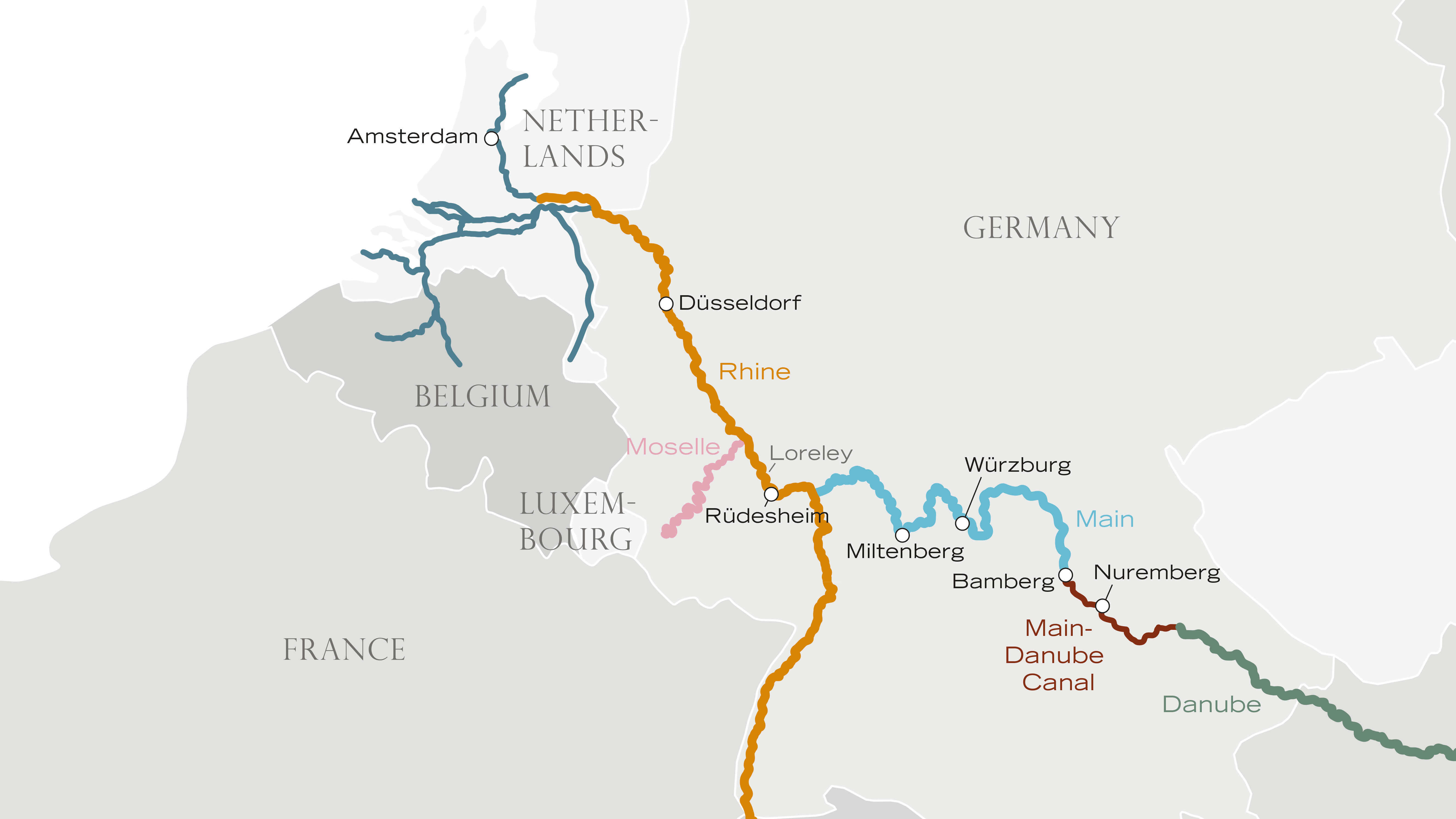 This is one of our most popular cruises—and you’ll quickly see why! You`ll love the culture, scenery, sights, and cuisine as you travel along the Rhine and Main. Explore Amsterdam, home to a vast network of canals, and bustling Düsseldorf, one of the world’s most livable cities. Pass through the dramatic Rhine Gorge, with castle ruins around every bend, and hear the eerie legend surrounding the Rock of the Lorelei. Other ports include the wine tavern-lined Drosselgasse in Rüdesheim, where the area`s famous Rieslings are served; the hilltop fortress at Würzburg; and Bamberg, where residents built their Town Hall right in the middle of the river in 1386 when the bishop refused to grant land for it.