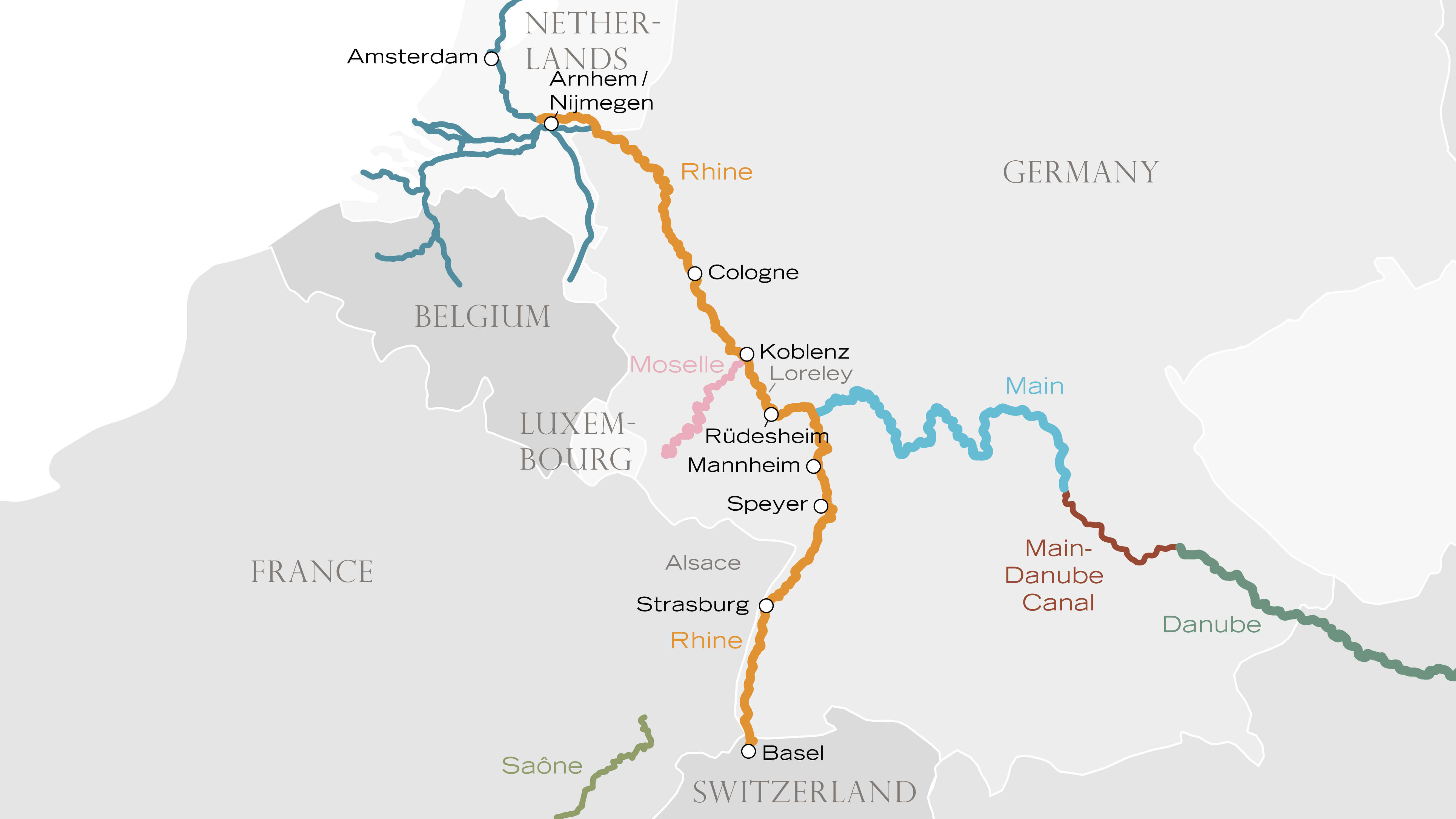 Eight days, four countries, and one impressive river. This special cruise reveals the allure of the incredible Rhine as it meanders past clifftop castle ruins and enchanting vineyards. Embark in Switzerland`s Basel, the congenial meeting point of Switzerland, Germany, and France. Then, visit France’s incomparable Strasbourg and enter Germany for stops at Mannheim with one of the largest palace complexes in the world; charming Rüdesheim in the heart of the stunning Rhine Gorge; “monumental” Koblenz, where the Rhine and Moselle Rivers converge; and Cologne with its famous twin-spired cathedral. Finally, cruise into the Netherlands and disembark in delightful Amsterdam, the perfect ending to your journey.