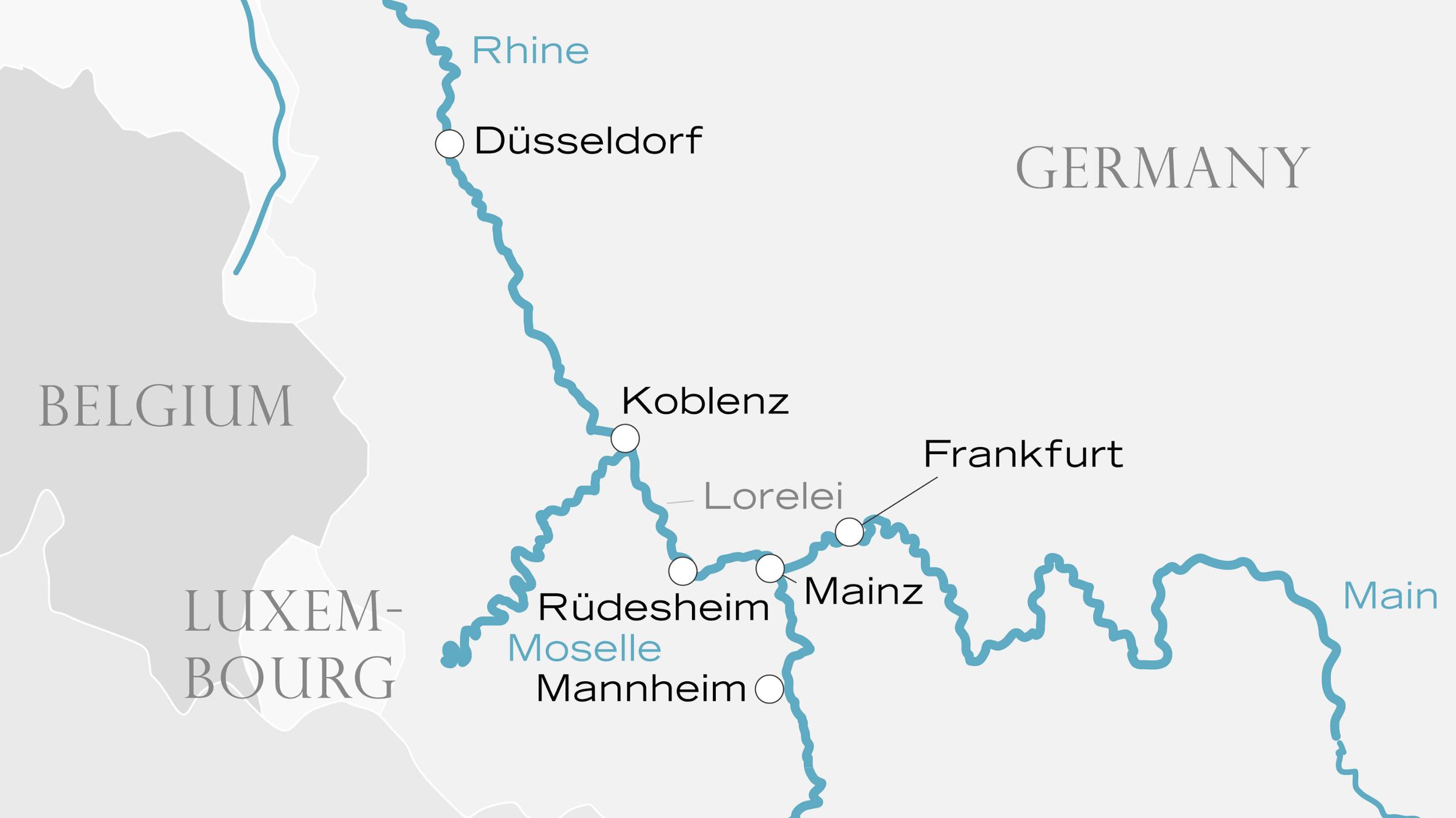 Deep in the heart of the Rhine Gorge is the romantic wine village of Rüdesheim, one of the river's most popular ports. Home to some of Germany's finest vineyards, Rüdesheim is particularly famous for its Riesling, as well as its signature coffee made with German brandy, whipped cream, and chocolate shavings. Highlight attractions include the cable car up to the Niederwald Monument, which commemorates the unification of Germany in 1871, and the atmospheric Drosselgasse, lined with gorgeous Old World architecture, boutiques, and countless cozy wine taverns.
