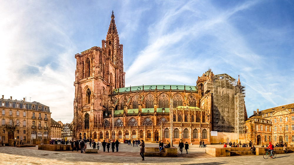 A continuación, baje del autobús y realice un recorrido a pie por Grande Île, la isla del casco antiguo, enmarcada por dos brazos del río. Pasee hasta la Catedral de Estrasburgo, de arenisca rosa, una joya de la arquitectura gótica, donde aprenderá sobre su historia de mil años y su famoso reloj astronómico. Tendrá la opción de entrar y explorarla por su cuenta si lo desea. Más tarde, cruce la Place Gutenberg para llegar a Petite France, el barrio más pintoresco del casco antiguo de Estrasburgo, conocido por sus magníficas casas de entramado de madera que datan de los siglos XVI y XVII.