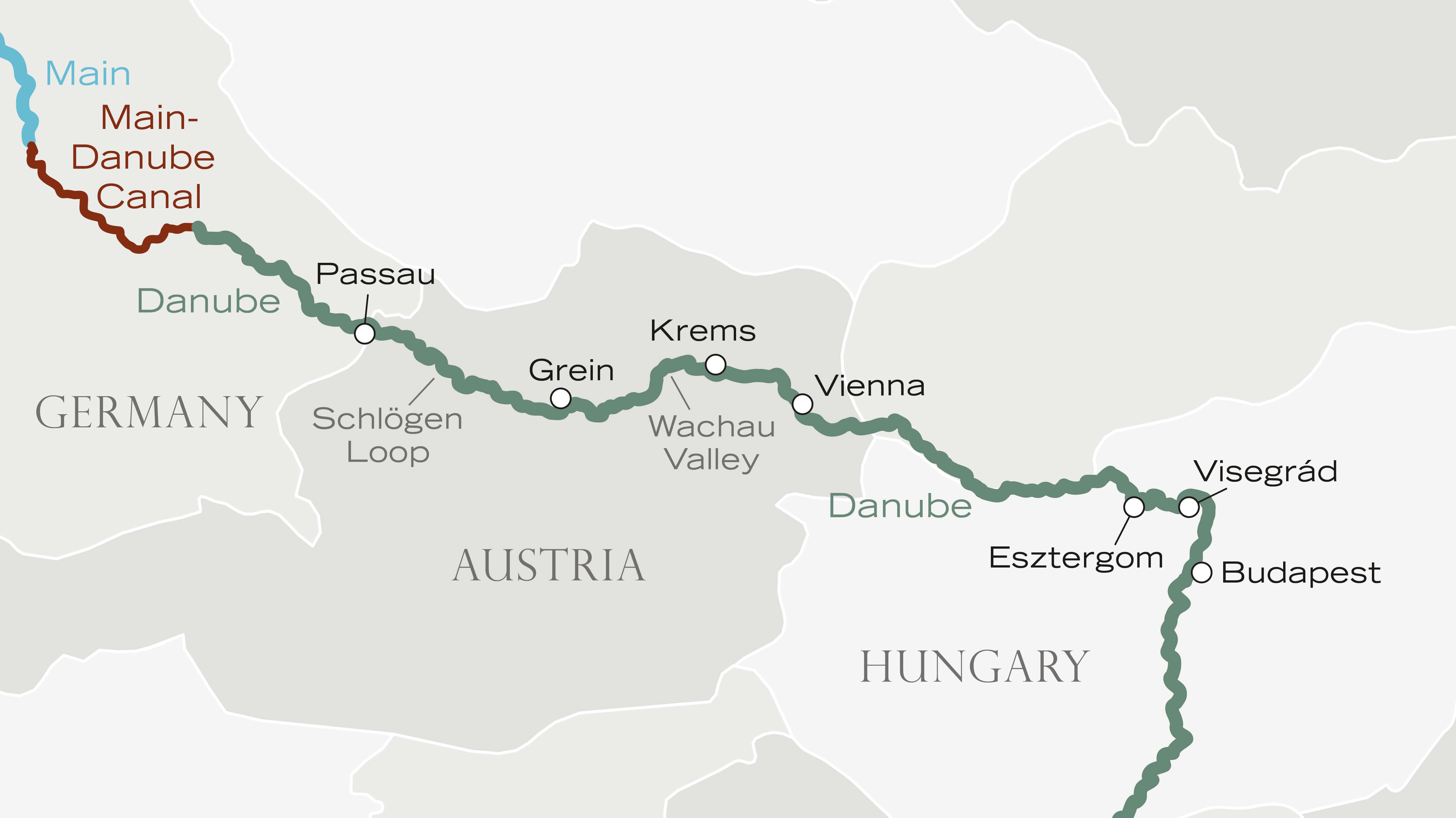 Si dispone de una semana, Riverside puede ayudarle a aprovecharla al máximo. Embarque en su barco de lujo en Passau, en la Baja Baviera, una antigua colonia romana y un centro de comercio y negocios en la Edad Media. Después, continúe hacia la encantadora ciudad de Grein, cuyo castillo del siglo XV se alza sobre el teatro más antiguo de Austria. Algunos de los paisajes más sobrecogedores de Europa (y sus vinos más exquisitos) le esperan en el valle de Wachau, así que mantenga su cámara a mano y su paladar preparado. Finalmente, contemple la majestuosidad de tres capitales a orillas del Danubio: la célebre Viena, en Austria; la sorprendente y maravillosa Bratislava, en Eslovaquia; y Budapest, en Hungría, una de las ciudades más bellas del mundo.