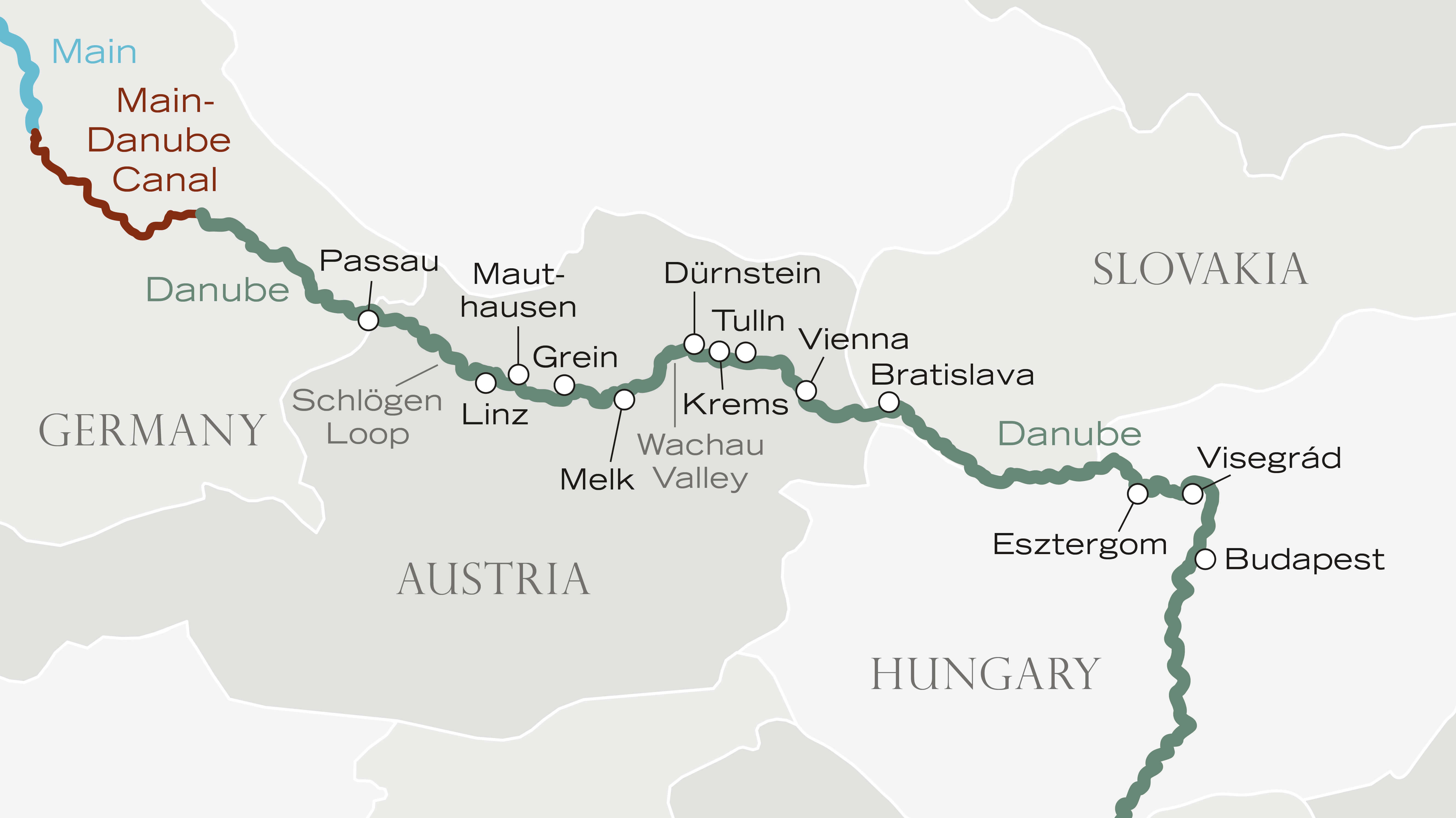 Este emocionante crucero por el Danubio combina cultura, historia y el tiempo necesario para disfrutarlo plenamente. Dedique dos días completos a explorar Viena, Bratislava y Budapest, tres de las cuatro capitales a orillas del Danubio. También descubrirá más de Hungría en la hermosa Esztergom, y se sumergirá en la belleza de Austria mientras navega por los encantadores paisajes del valle de Wachau y la curva de Schlögen. Visite Dürnstein, con sus fascinantes leyendas sobre Ricardo Corazón de León; Melk, con su imponente abadía benedictina; el pequeño pueblo mercantil de Mauthausen; y los encantadores Linz, Grein y Krems. También explorará Tulln, con más de 2,000 años de historia, y Passau, en Alemania, la célebre Ciudad de los Tres Ríos. ¡ Incluso tendrá tiempo para relajarse con un masaje, un tratamiento de spa o una sesión de ejercicio a bordo de su lujoso barco Riverside !